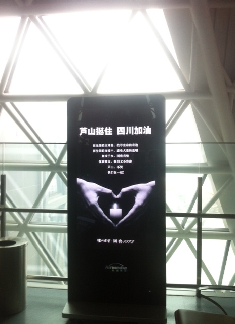 Noch etwas ist wie im Westen, etwas, das ich gerade in China nicht erwartet hatte: Die Berichterstattung ist in etwa so reißerisch und emotional wie ich es sonst nur aus den USA kenne. Studiosettings mit dramatischen Schriftzügen und Fotomontagen. Abspannfilme, die leidende Menschen aneinanderreihen, mit heroischer Musik untermalt. Und das alles in höchster Profssionalität (qualitätstechnisch, nicht journalistisch ethisch gemeint). Die Klischees verblichener Fernsehbilder, die man oftmals über China im Westen hat, müssen jedenfalls sofort weichen.